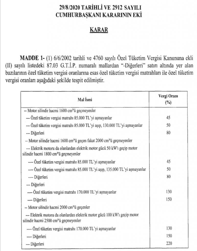 Motor silindir hacmi 1600 ile 2000 arasında olan araçlarda yüzde 60 olan ÖTV oranı yüzde 80’e çıktı. 2000 motor üstü araçlarda yüzde 100 ile yüzde 160 arasında olan ÖTV oranı yüzde 130 ile yüzde 220’ye çıkarıldı.