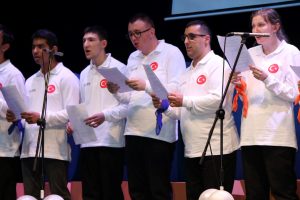 Özel eğitim alınmasını gerektiğini öğrendiklerini belirten Ayşegül Hanım, ‘’Adapte olmalıydık, Yaşar Kaan için en iyisini yapmalıydık. Oğlum şu an yirmi dört yaşında. Yirmi dört yıla çok şey sığdırdık. Neler başardık, ne kadar yol kat ettik. Daha da başaracağız. Özel çocuğa sahip annelerin babaların bunları yaşamış olduğunu çok iyi biliyorum. Çocuğundan anne baba kelimesini duymanın mutluluğunu hepimiz biliriz. Bugün oğlum çok özel insanların gönül verdiği Cemil Meriç Engelsiz Yaşam Merkezine gidiyor. Buradaki öğretmen ablalarımız, abilerimiz çok ama çok özverili davranıyorlar. Burada yapılan etkinlikler, geziler çocuklarımızı Cemil Meriç’e severek isteyerek gelmelerini sağlıyor. Hem çocuklarımıza hem de bizlere gereken desteği sağlıyorlar. Öğretmenlerimizin hakkını hiçbir zaman ödeyemem. Hepsine çok teşekkür ediyorum’’ sözleriyle konuşmasını bitirdi.