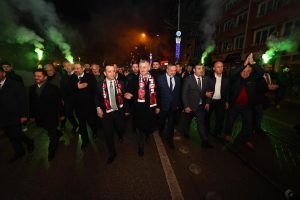 Tahir Büyükakın konuşmasında, “Şu gördüğümüz tablo 31 Mart’ın habercisi. 31 Mart’ta öyle bir kazanacağız ki hiç kimse kaybetmeyecek. Tabela değil, sosyal medya değil gerçek belediyecilik kazanacak. 31 Mart gecesi Belsa Plaza gerçek belediyecilik ateşiyle tutuşacak. Biz paşayla ve İzmit ile gurur duyuyoruz. 12 ilçemizle gurur duyuyoruz. Buradaki coşku 31 Mart’ın coşkusu. Paşa’da iş bitmiş, inşallah 31 Mart’ta İzmit’te gerçek belediyeciliği başlatacağız. Bütün İzmit zaferden memnun olacak.