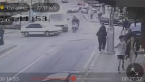 Öte yandan, olay anına ait güvenlik kamera görüntüsünde, hızla gelen otomobilin motosiklete çarptığı, çarpmanın şiddetiyle motosikletin savrulduğu anlar yer aldı.
