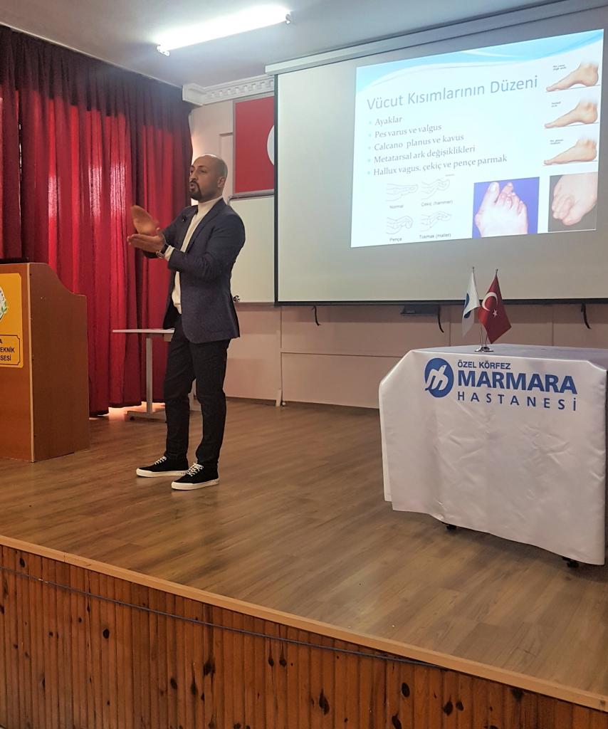 Fizyoterapist Ömer Sayma  lise öğrencilerine ‘Postür nedir,analizi nasıl yapılır,uzun vade duruş bozukluklarında ortaya çıkan rahatsızlıklar nelerdir ve bu problemlerin tedavi edilmesinde hangi yollar izlenmeli’ konusunda aydınlatıcı bilgiler paylaştı. Ders dinlerken ve çalışırken nasıl oturmaları gerektiğini anlatan Fizyoterapist Ömer Sayma öğrencilere günlük yaşam aktivitelerinde omurgalarını nasıl koruyacaklarını öğretti.Öğretmen ve öğrencilerin yoğun ilgisini toplayan sunumda ,uzun süreli oturmak zorunda kalan ofis,banka çalışanlarının,öğrencilerin ,otururken yapabileceği egzersizleri uygulamalı yaptırarak  salonda eğlenceli anlar yaşattı.