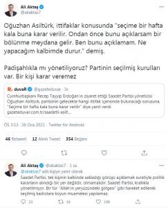 Asiltürk’ün “Kararımı açıklarsam bölünme olur” sözlerini alıntılayan Aktaş, sosyal medya hesabından şu açıklamayı yaptı: