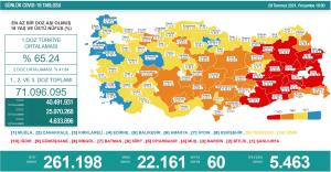 Tabloya göre son 24 saatte 22 161 yeni vaka tespit edildi, 60 kişi de korona virüs nedeniyle hayatını kaybetti.