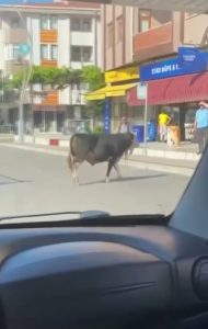 Kurban Bayramı’nda Kocaeli’nin Körfez ilçesinde kesimden kaçan dana, D-100 Ankara istikametini birbirine kattı. Kirazlıyalı mevkiinde zaman zaman D-100’de yolun ortasına dalan dana, trafiği de yavaşlattı. Bir yandan sahipleri kaçan danayı ararken bir yandan da polis ekipleri trafiği tehlikeye düşüren durumu gidermek için yakalama çalışması başlattı. En sonunda sahipleri tarafından yakalanan dana, tüm firar girişimlerine rağmen en yakın kurban kesim merkezine götürülerek kesildi. Ortaya ise renkli görüntüler çıktı. Öte yandan, Kocaeli’de kentin farklı noktalarında da şehir içinde dolaşan kaçak büyükbaş hayvanlar görüntülendi.