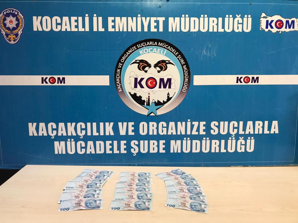 Kocaeli İl Emniyet Müdürlüğü Kaçakçılık ve Organize Suçlarla Mücadele Şube Müdürlüğü Ekipleri, son bir ay içerisinde 9 ayrı iş yerinde yapılan alışveriş ve para bozdurma olaylarında sahte para kullanılması üzerine çalışma başlattı.  Yapılan çalışmalarda 3 ayrı şüpheli tespit edildi. Şahısların yakalanması amacıyla çalışma başlatan Kocaeli Polisi, şahısların kullandığı aracı takibe alarak 13 Mart günü Kartepe İlçesinde muhtemelen yeni bir olay gerçekleştirecekleri esnada durdurdu.  Araçta yapılan aramada çok sayıda sahte 100 TL’lik banknotlar ele geçirildi.  Olayla ilgili A.K, M.S ve S.A isimli şüpheliler gözaltına alındı.  Adliyeye sevk edilen şüphelilerden A.K ve M.S tutuklanırken, S.A isimli şüpheli adli kontrol kararı ile serbest kaldı.