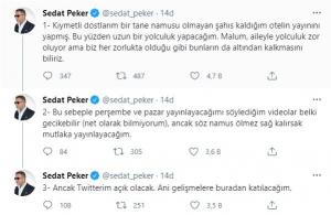 Sedat Peker, sosyal medya hesabından yaptığı açıklamada şu ifadeleri kullandı: