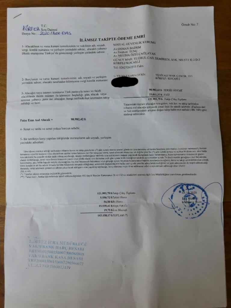 Kocaeli’nin Körfez İlçesi’nde yaşayan Yılmaz Kara isimli vatandaş, 2015 yılında SGK’ya emeklilik için dilekçe verdi. Yapılan incelemeler sonucunda emekli edildi. 5 yıldır emekli maaşı alan Yılmaz Kara; SGK’dan 5 ay önce kendisine bir tebligat karşısında şok oldu. Tebligatta ’10 gün primin eksik hesaplanmış. Yasal faizi ile sana ödenen 143 bin lirayı kuruma geri iade edin’ deniliyordu. Bu tebligat karşısında şoke uğrayan vatandaş, şimdi hukuk mücadelesi vermeye başladı. Maaşına güvenerek konut kredisi çeken mağdur vatandaş; şimdi konut kredisini dahi ödeyemiyor.