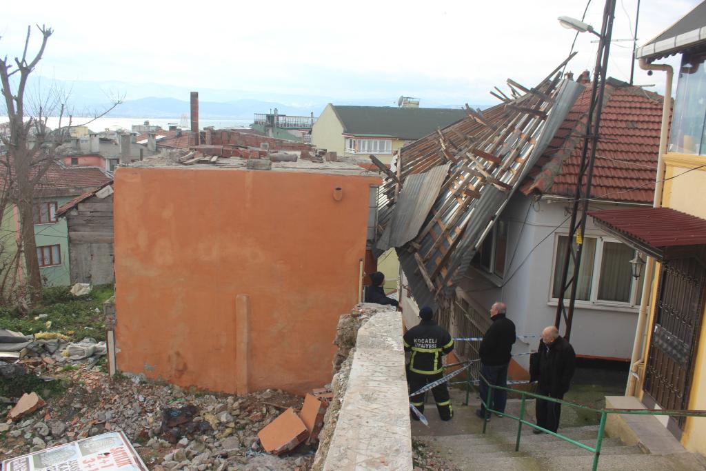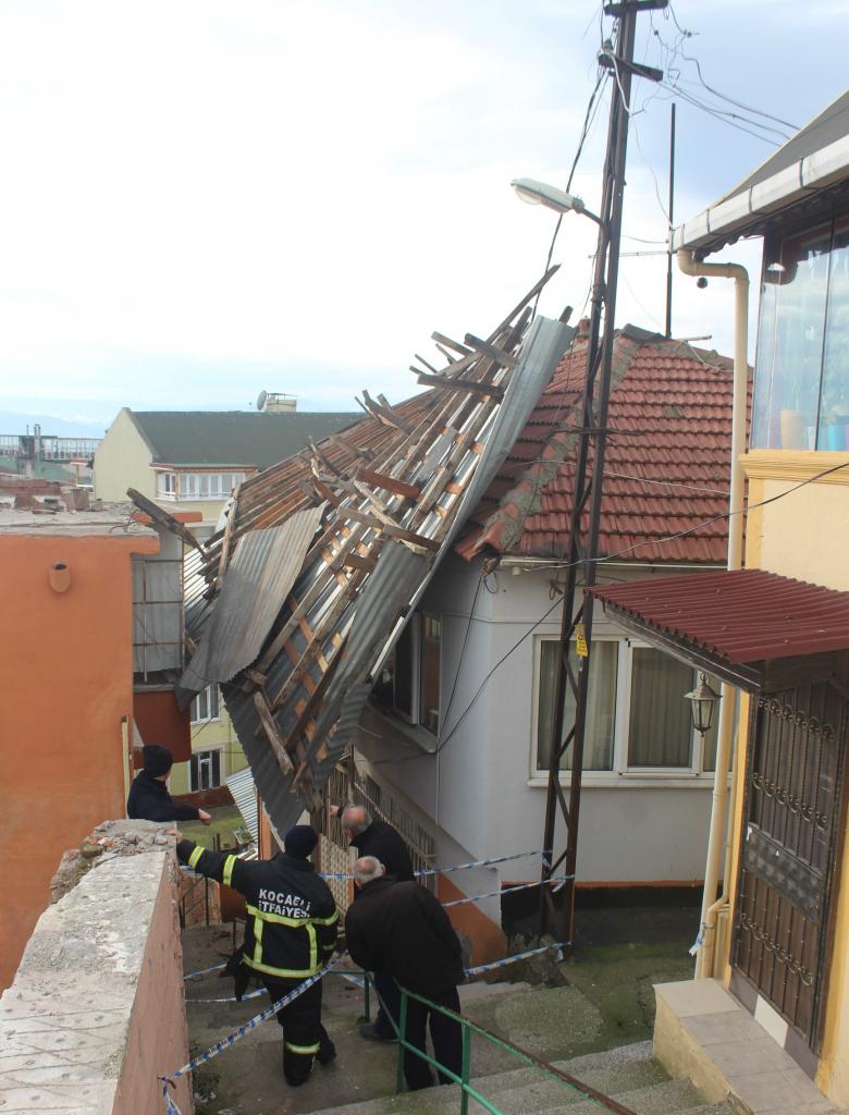 İzmit İlçesi Cedit Mahallesi Tepeli Sokak üzerinde bulunan ve bir süre önce vefat ettiği öğrenilen Fahriye Hoşdil’e ait 2 katlı boş binanın çatısı, sabah saatlerinde şiddetli olan Lodosun etkisiyle yerinden sökülerek, karşısında bulunan Nurettin Armağan’a ait 2 katlı apartmanın üzerine uçtu.