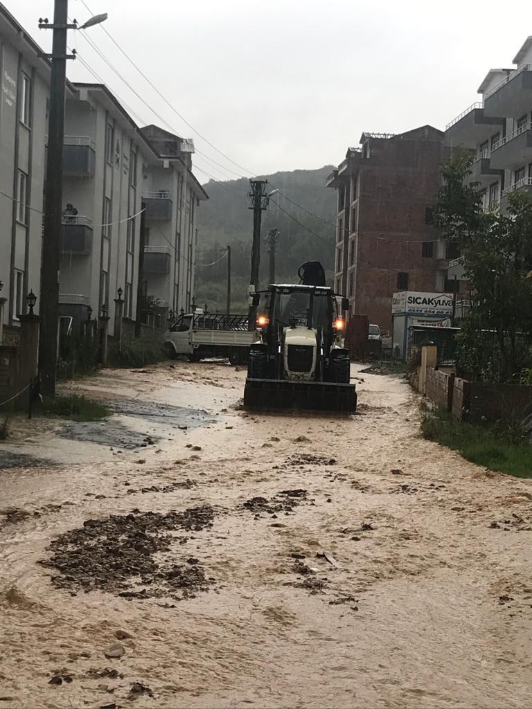 İzmit’te sabah saatlerinde kenti etkisi altına alan şiddetli yağışın ardından Belediyenin Fen İşleri Müdürlüğü, Zabıta Müdürlüğü ve Temizlik İşleri Müdürlüğü ekipleri hemen harekete geçerek şehir genelinde yoğum çalışma gerçekleştirdi. Ekipler Karadenizliler Mahallesi Dikmeler Sokak üzerinde yağışla birlikte yola kayan toprağı temizleyerek yolu trafiğe açtı. Ayrıca Yenimahalle Mahallesi Buse Sokak’ta yağmur suyunun birikmesini önlemek amacıyla su geçişi için kanal açıldı.