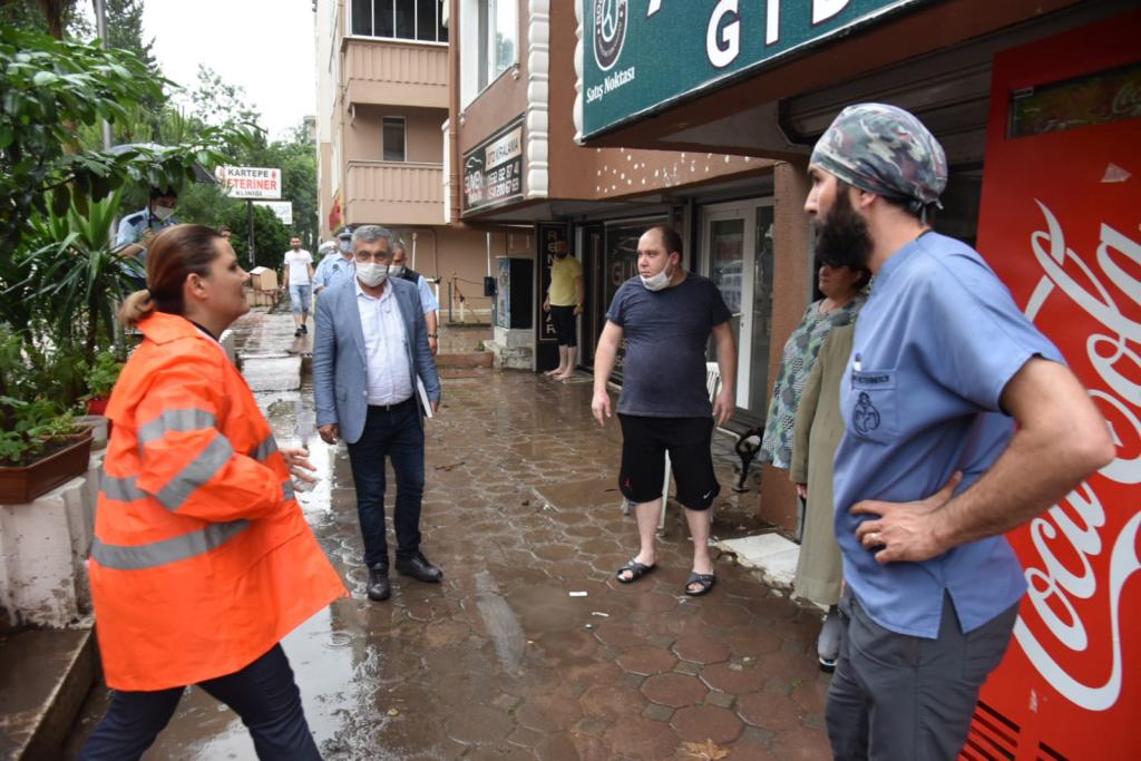 Çalışmalar sırasında açıklama yapan Başkan Hürriyet, “Bugün Büyükşehir meclisinde başkan ile görüşeceğiz. Buranın alt yapısını masaya yatıracağız. Bazı bölgelerde altyapı kaldırmıyor. Çok şiddetli yağış oldu. Ekiplerimiz İSU ekipleri ile koordineli çalışıyor. Yaşanan sıkıntıları çözmek için vatandaşımızın yanındayız.” ifadelerini kullandı.