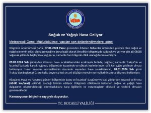 Kocaeli Valiliği uyardı.  Soğuk ve yağışlı hava geliyor.