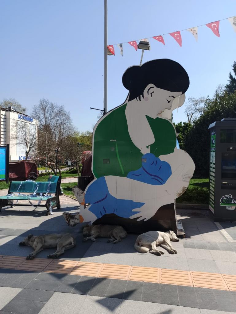 Sokağa çıkma yasağı ile birlikte her yer gibi haftasonu sessiz kente bürünen İzmit’te güzel bir görüntü yaşandı. İnsanlar evde kalırken, sokak hayvanları keyfini sürdü.