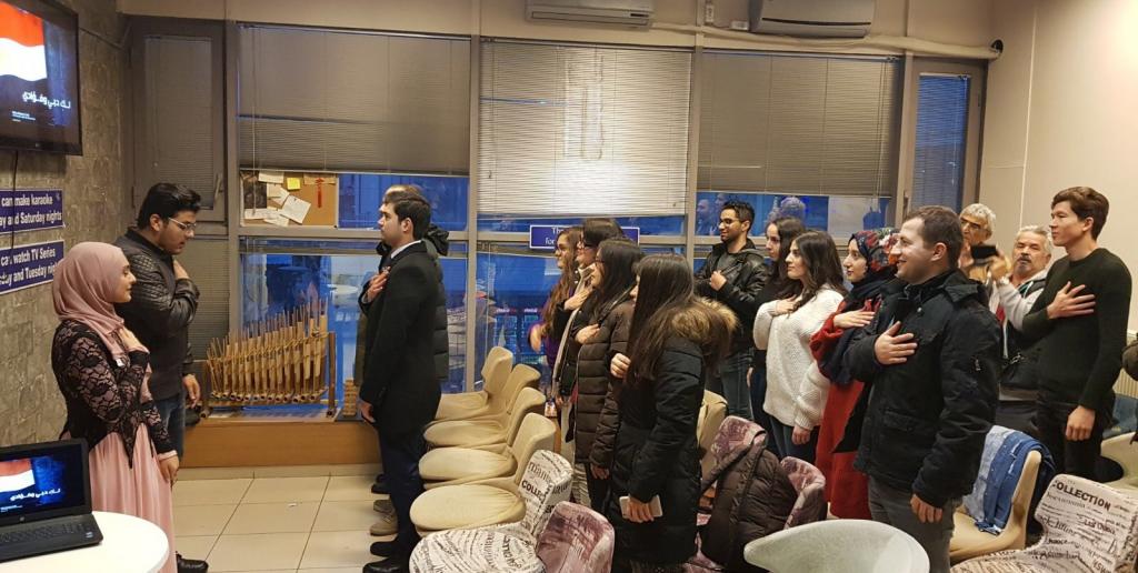 Belsa Kuyumcular Çarşısı üzerinde bulunan Speaking Kafe’de düzenlenen Mısır kültür gecesinde ulusal marşlar okunduktan sonra Ahmed El-Blkemy ülkesini tanıtan bir sunum gerçekleştirdi. El-Blkemy’ın Mısır tarihi, gezilecek yerler ve ülke mutfağı hakkında gerçekleştirdiği sunum ilgiyle takip edildi.
