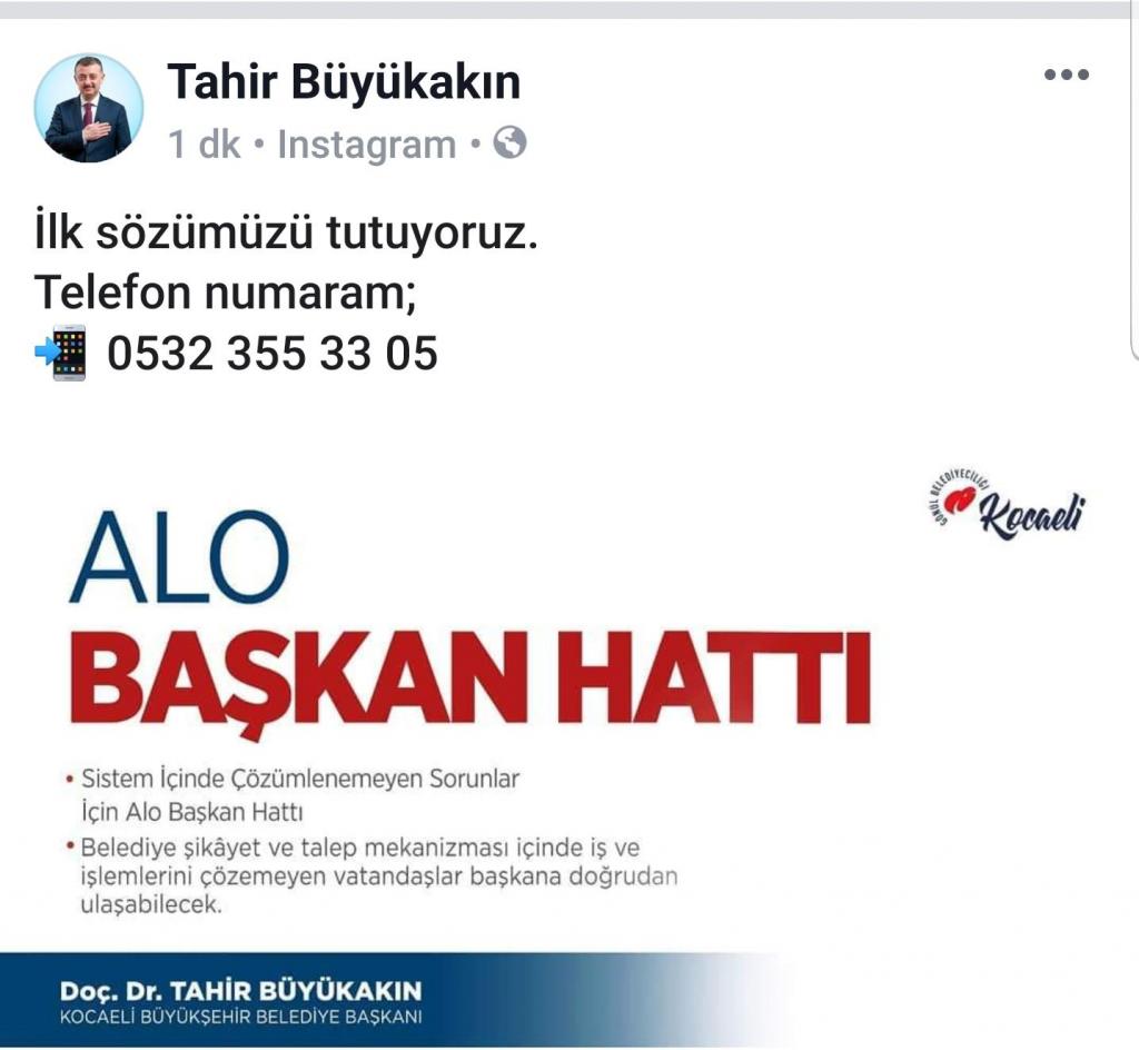Kendi sosyal medyasından 0532 355 33 05 telefon numarasını paylaşan Başkan Büyükakın’a, vatandaşlar istediği an ulaşabilecek. Vatandaşlar sistem içinde çözülemeyen sorunlarını Başkan Büyükakın’a iletebilecek.