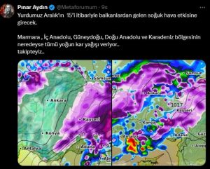 Meteoroloji uzmanı Pınar Aydın’dan kar müjdesi geldi.