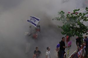 Tel Aviv‘deki Begin Caddesi’ni trafiğe kapatan göstericiler, yolda ateş yaktı. Polis ile göstericiler arasında arbede çıktı.