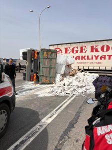 Anadolu Otoyolu Çayırova geçişi İstanbul istikametinde meydana gelen kazada inşaat malzemeleri taşıyan tır, nakliyat kamyonu ve inşaat malzemesi taşıyan kamyon çarpıştı. Meydana gelen zincirleme kaza sebebiyle otoyolun İstanbul istikameti trafiğe kapandı. Devrilen kamyonun kasasındaki malzemeler yola saçıldı. Kaza sebebiyle kilometrelerce araç kuyruğu oluştu. İhbar üzerine kaza yerine sağlık ve polis ekipleri sevk edildi. Ekipler, yaklaşık 1 saattir otoyolun trafiğe açılması için çalışmalarını sürdürüyor.