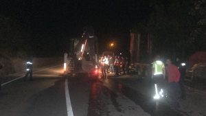 Kocaeli’nin Körfez ilçesinde kasasında 2 iş makinesi taşıyan tır, bayır aşağı indiği esnada yavaşlayamayarak bariyerlere çarptı. İş makinelerinin metrelerce aşağı uçtuğu kazada 1 kişi ağır yaralanarak yoğun bakıma alındı.