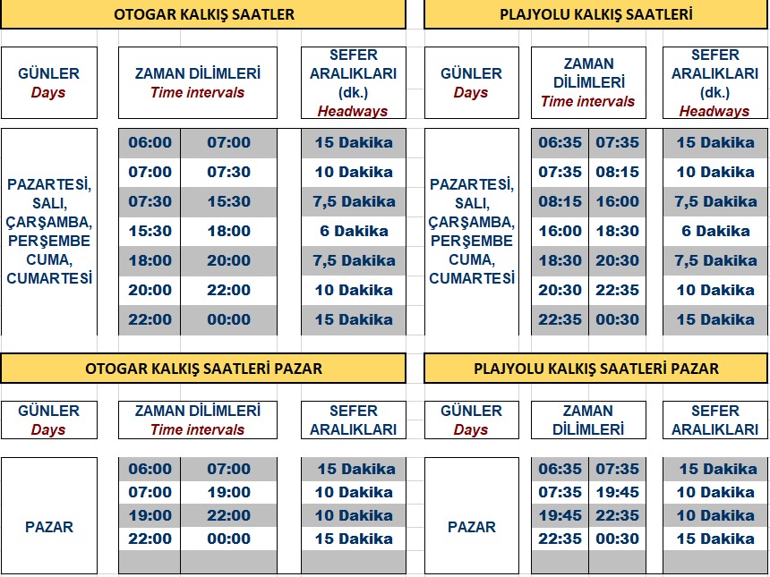 7 FARKLI ZAMAN DİLİMİNDE SEFER GERÇEKLEŞTİRECEK