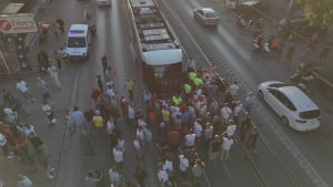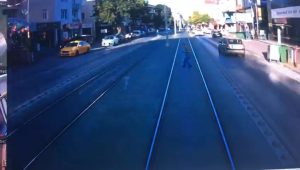 İzmit ilçesinde bir kişinin tramvayın çarpması sonucu hayatını kaybettiği kaza anı güvenlik kamerasına yansıdı.