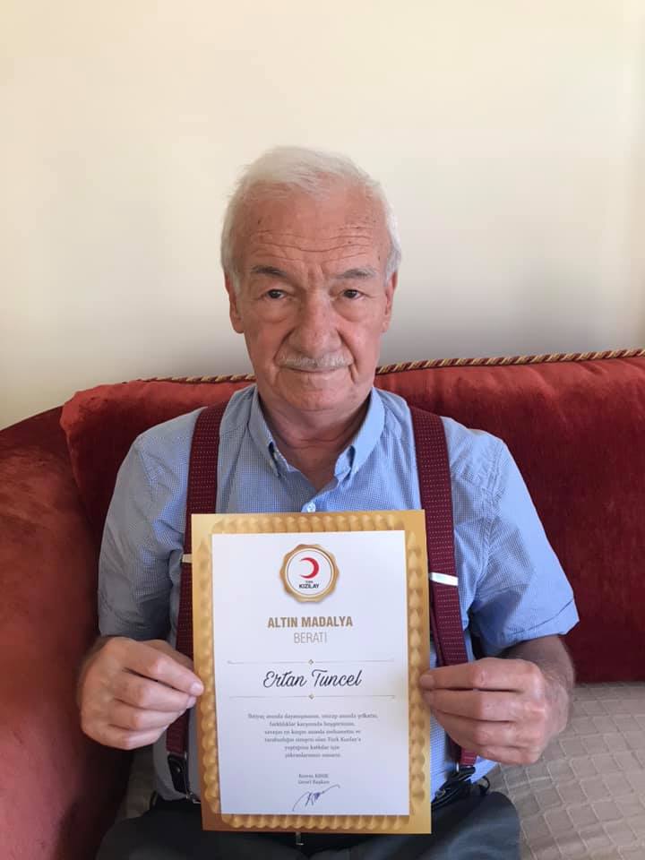 Gebze Kızılay Şubesinde 25 yıl Şube Başkanlığı yapan Ertan Tunçel Türk Kızılay tarafından Altın Madalya Beraatinle ödüllendirildi.