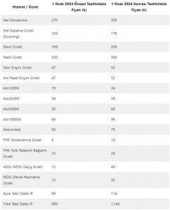 Türk Telekom tarafından yapılan açıklamada şunlar söylendi: “1 Ocak 2024 tarihinden itibaren; Evde/İşte İnternet tarifelerinin liste fiyatı, Yalın/Alo erişim liste fiyatı ve Alo dakika paketlerinin liste fiyatı, Statik IP liste fiyatı ve Tek Seferlik İşlem ücretlerinde (devir, nakil, hat dondurma, hat kapama) güncelleme yapılacaktır. Bahse konu liste fiyatı güncellemelerinden, sadece taahhütsüz durumda olan müşterilerimiz etkilenecek olup, taahhütlü müşterilerimiz taahhüt süreleri boyunca herhangi bir fiyat değişikliğinden etkilenmeyecektir. Taahhütsüz müşterilerimiz de avantajlı kampanyalarımıza katılarak hiçbir fiyat değişikliğinden etkilenmeden kullanımlarına devam edebilirler.“