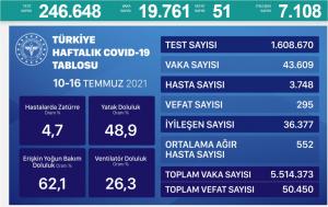 Sağlık Bakanlığı, Kovid-19 bilgilendirme Platformu üzerinden 57 Temmuz 2021 tarihli korona virüs vaka tablosunu açıkladı.