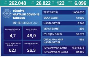 Tabloya göre son 24 saatte 26 bin 822 yeni vaka tespit edildi, 122 kişi de korona virüs nedeniyle hayatını kaybetti.