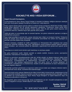 Vali Seddar Yavuz’dan veda mesajı