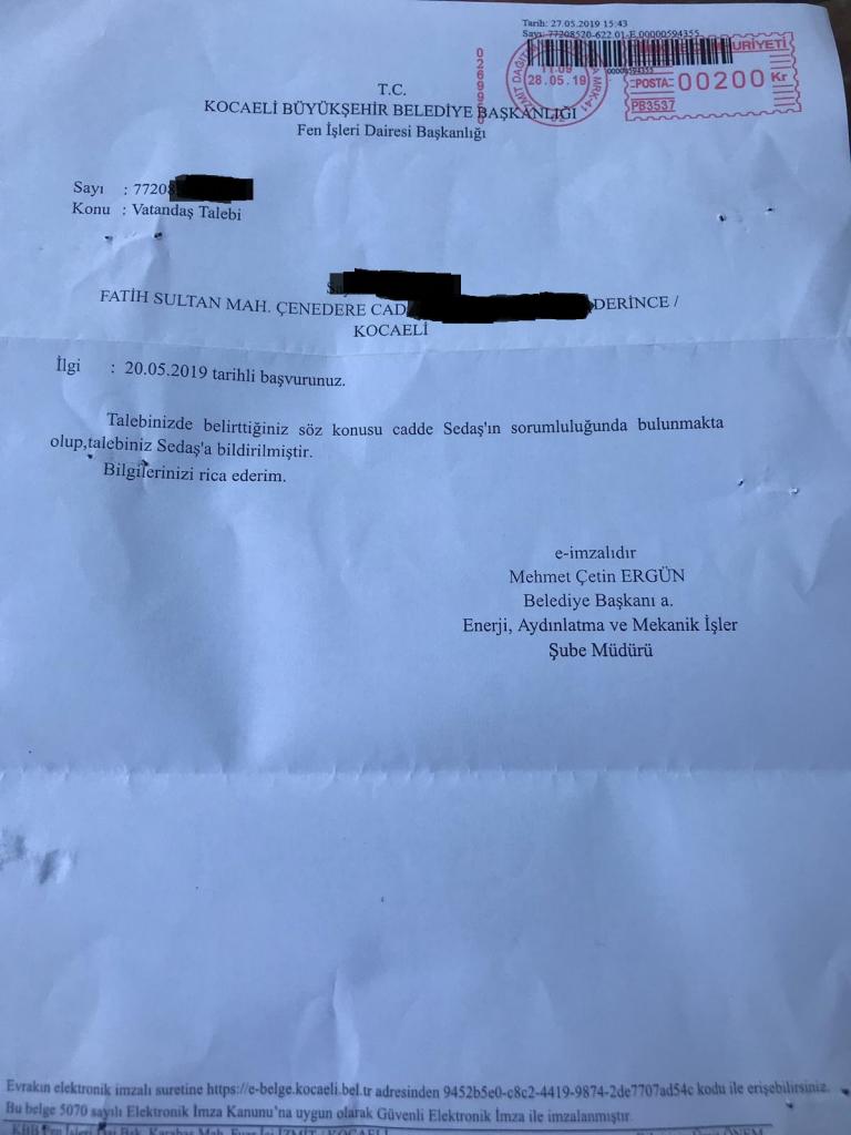 Yerel seçimlerde seçildikten sonra caddeye bir kere gelmediğini ve mahalle sakinlerinin sorunlarına kayıtsız kaldıklarını ifade ettiler. Mahalleli Kocaeli Büyükşehir Belediye Genel Sekreter yardımcısından 3-4 defa randevu istediklerini ancak kale bile alınmadıklarını ifade ettiler.