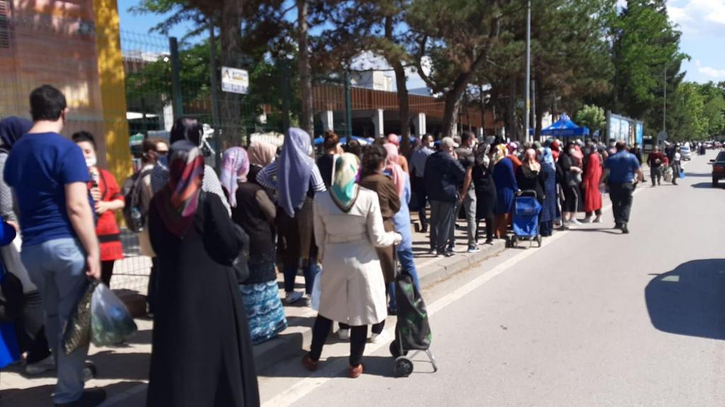 Normalleşme sürecine girdiğimiz bu günlerde yetkililer tedbirli olunması yönünde uyarmasına rağmen, vatandaş yine bildiğini okumaya devam ediyor. İzmit Doğu Kışla Pazarı’nda bugün ortaya çıkan manzaralar tedbirlere ne kadar duyarsız kalındığını bir kez daha gösterdi. Pazar alanı girişinde yaşanan yoğunluk ve oluşan kuyrukta insanların sosyal mesafeye uymadıkları görüldü. Neredeyse birbirlerine temas edecek şekilde yakın durdukları gözlemlendi. Yetkililerin tedbirli olun çağrılarına rağmen pazar girişinde ortaya çıkan tablo korkuttu.