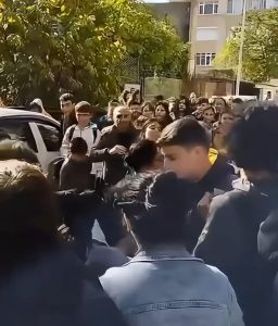 Velilerin öğrenciler önündeki kavgası cep telefonu kamerasıyla anbean kaydedildi.