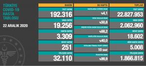 Sağlık Bakanı Fahrettin Koca, 22 Aralık tarihine ait Türkiye’deki korona virüs hasta ve vefat sayısını açıkladı. Bakan Koca’nın açıkladığı veriye göre Türkiye’de bugün 19 bin 256 yeni hasta tespit edildi, 251 kişi ise hayatını kaybetti.