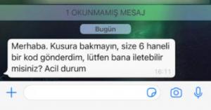 “Merhaba, kusura bakmayın, size yanlışlıkla SMS ile 6 haneli bir kod gönderdim, lütfen bana iletebilir misiniz? Acildir.”
