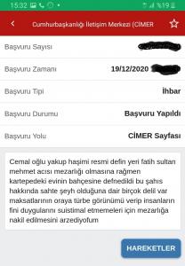 İddialara göre olay şaşırtan olay şu şekilde ortaya çıktı. Haşimi toprağa verildikten bir süre sonra, derneğe ait dergâh her gün çok sayıda kişi gelmeye başladı.  Bahçede bulunan mezarlık başında dualar eden müritleri gören bir vatandaş,  olayı araştırıp Haşimi’nin mezarlık yerine dergahın bahçesine gömüldüğünü tespit edince CİMER’e şikâyette bulundu. Vatandaş, CİMER’e yazdığı şikâyette, resmi defin yeri Fatih Sultan Mehmet Acısu Mezarlığı gösterilen kişinin, evinin bahçesine defnedildiği,  bu şahıs hakkında sahte şeyh olduğuna dair deliller olduğunu, maksatlarının orayı türbeye çevirerek insanların dini duygularını su istimal etmek olduğunu iddia ederek,   mezarlığın naklini talep etti. CİMER’e yapılan şikayet sonrası yapılan işlemler ile şikayet belediyeye yönlendirildi. Kartepe Belediyesi’nin ise,  belediyeye CİMER’den ulaşan yazı ile birlikte,  yapılan başvurunun araştırılıp incelenerek yasal mevzuat kapsamında gereğinin yapılacağı cevabını verdi. Belediye geçtiğimi günlerde açtığı soruşturmayı tamamladı. Ardından   hazırlanan evraklar Kocaeli Cumhuriyet Başsavcılığına gönderildi.