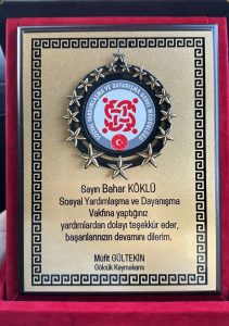 Bahar Köklü, Gölcük İlçe Kaymakamı Müfit Gültekin’e plaket dolayısıyla teşekkür ederken, “Hepimiz toplum içinde yaşıyoruz, yardım konularına duyarlı olmamız gerekiyor. İnsanlarımızın yanında olmalıyız. İhtiyaç sahiplerine destek olma noktasında çalışmalarımı yürütmeye devam edeceğim”. İfadelerini kullandı.