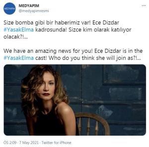 Medyapım, güzel oyuncu Ece Dizdar’ın Yasak Elma dizisinin kadrosuna dahil olduğunu açıkladı. Ece Dizdar’ın dizide hangi karaktere hayat vereceği ise önümüzdeki günlerde belli olacak.