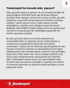 Türkiye’nin en büyük çevrimiçi yemek sipariş sitesi Yemeksepeti 25 Mart’ta siber saldırıya uğradığını ve kullanıcıların verilerinin çalındığı açıkladı.