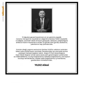 13 Ağustos gecesi hayatımızın en acı gününü yaşadık. Canımız, her şeyimiz, hayattaki en değerlimiz Şanbaz YILDIZ’ı kaybettik. O iyiliğiyle, yüzünden eksik olmayan gülüşüyle, vefasıyla, çalışkanlığıyla binlerce insanın hayatında iz bıraktı. İyi günde, kötü günde, dostlarının, yakınlarının hep yanında oldu.