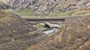 Düşük su seviyesi nedeniyle baraj havzasındaki eski köprü yeniden görünür hale geldi.