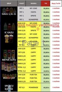 Dündar’ın yeni paylaşımında ise, “Daha önce duyurduğumuz Coca Cola zamlı ürün satış fiyatları buna göre coca cola 1 litre çeşitleri 35 ₺ 330 kutu çeşitleri 30 ₺ oldu.” ifadelerinde bulundu.
