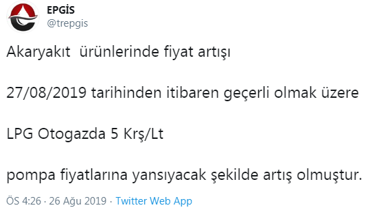 Benzin ve motorinin ardından bir zam haberi de otogaza geldi.